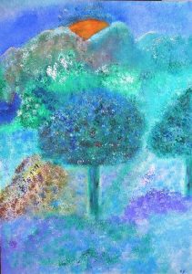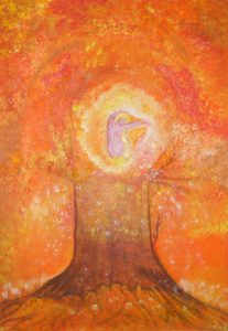 Baumgeist Acryl & Pastell-Ölkreide auf Tintoretto